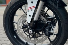 System hamulcowy Brembo - światowego lidera i innowatora w dziedzinie technologii hamulców motocyklowyach - gwarantuje maksymalne bezpieczeństwo i niezawodność. Przednie tarcze posiadają średnicę 298 mm, tarcza tylna 255 mm. Układ hamulcowy wyposażony jest w system ABS BOSCH 9.1 MB.